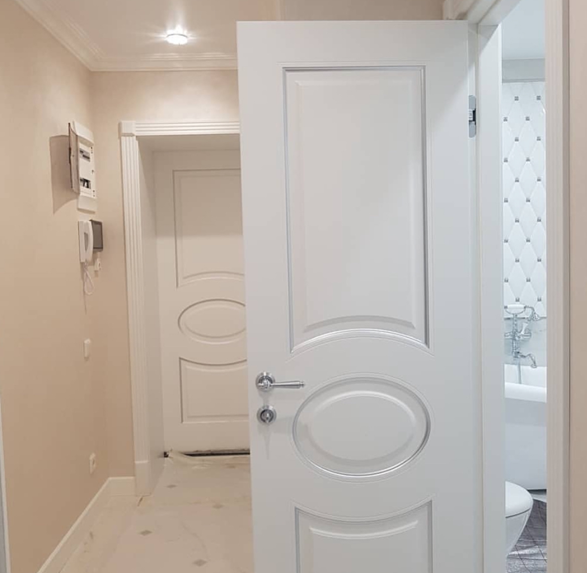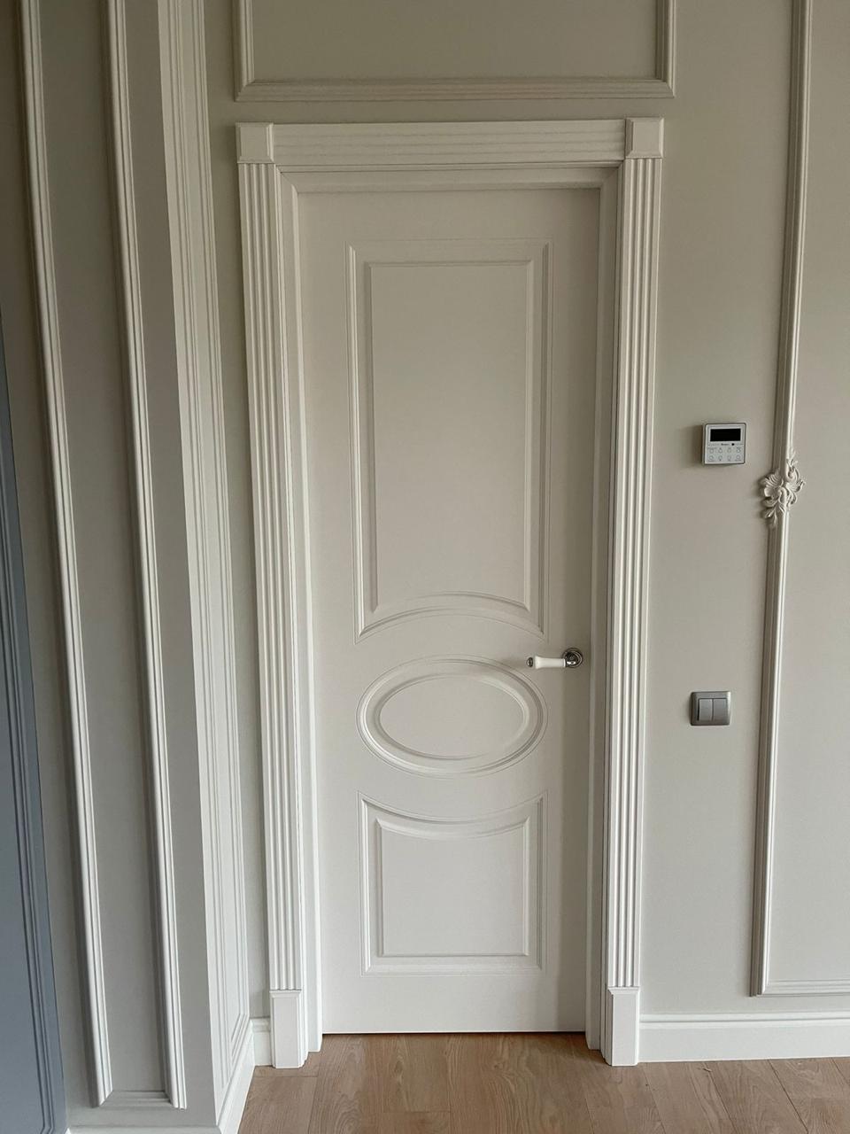Неоклассика основывается на традициях, которые интерпретированы в современный дизайн, при этом роскошь и элегантность классического стиля будут присутствовать в каждой детали интерьера. Коллекция Leda предлагает полотна с классическими филенкам. Полотно выполнено в современной технике фрезерования. Такой метод позволяет создавать объемные формы на цельной монолитной плоскости полотна.