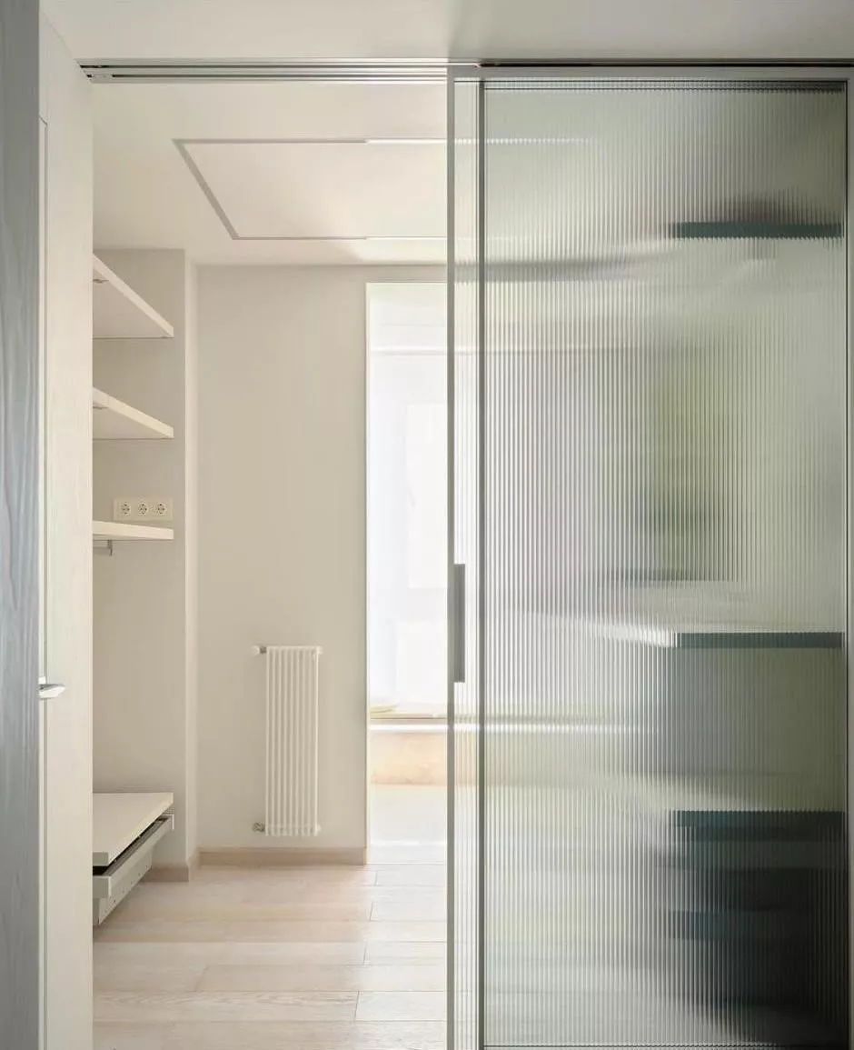 - Освещение: Если в гардеробной недостаточно света, идеальными будут стеклянные двери или конструкции с фрамугами для дополнительного освещения.